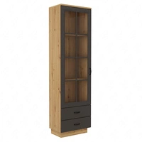 Style 60 cm Vitrine Eiche artisan / grau graphit klassisches Design Vitrine aus gehärtetem Sicherheitsglas für das Wohnzimmer mit Schubladen