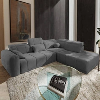 Ecksofa mit Schlaffunktion Cetara II grau linke Seite stilvolles Design verschiebbare Rückenlehnen verstellbare Kopfstützen und Bettzeugbehälter