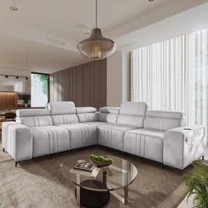 Ecksofa mit Schlaffunktion Castel VII grau Esche links stilvolles Ecksofa mit Bettzeugablage und verstellbaren Kopfstützen