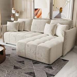 Ecksofa mit Schlaffunktion Oroso U beige Bettzeugcontainer weicher Samtstoff mit hydrophober Beschichtung dekorative Steppung