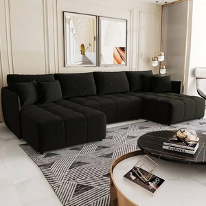 Ecksofa mit Schlaffunktion Oroso U graphitfarbener Leinencontainer weicher Samtstoff mit hydrophober Beschichtung dekorative Steppung
