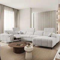 Ecksofa mit Schlaffunktion Penejos XII hellgrau rechte Seite stilvolles Ecksofa mit Bettzeugcontainern komfortable verstellbare Kopfstützen