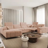 Ecksofa mit Schlaffunktion Penejos IV Lux Lachs linke Seite stilvolles Ecksofa mit bequemer ausziehbarer Fußstütze