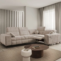 Ecksofa mit Schlaffunktion Penejos IV Lux beige linke Seite stilvolles Ecksofa mit bequemem ausziehbarem Fußteil
