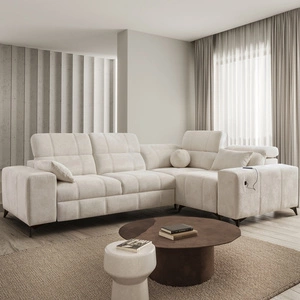 Ecksofa mit Schlaffunktion Penejos VII creme links stilvolles Ecksofa mit Bettzeugablage komfortable verstellbare Kopfstützen