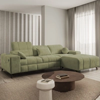 Ecksofa mit Schlaffunktion Penejos olive rechts elegantes Ecksofa mit Bettzeugablage bequem verstellbare Kopfstützen