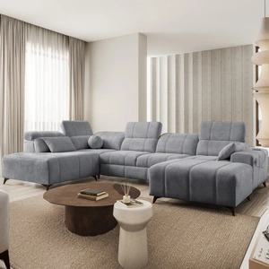 Ecksofa mit Schlaffunktion Penejos II Lux grau rechts bequemes Ecksofa für das Wohnzimmer mit komfortablem ausziehbarem Fußteil