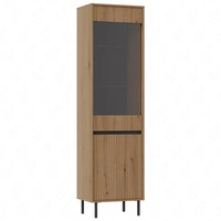Schrank Osaka 56 cm Eiche evoke/schwarz eleganter Wohnzimmerschrank mit minimalistischem Design geschmackvolle geriffelte Front gehärtetes Glas