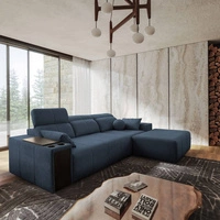 Ecksofa mit Schlaffunktion Tesalia blau rechte Ecke modernes Design komfortable Schiebelehne Schublade in der Seite des Möbels