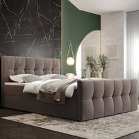 Boxspringbett Manhattan 90x200 hellbraun Bett im modernen skandinavischen Stil mit gepolstertem Kopf- und Fußteil Bett mit Staukasten