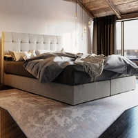 Boxspringbett Widnes 180x200 beige Bett im modernen skandinavischen Stil mit markantem Kopfteil