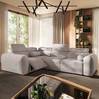 Ecksofa mit Schlaffunktion Cantare II Lux elfenbeinfarbenes Komfort-Ecksofa für die linke Seite mit hochklappbarem Fußteil weicher Stoff