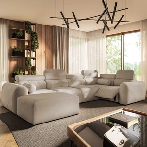 Ecksofa mit Schlaffunktion Cantare III Lux beige linke Seite stilvolles und bequemes Ecksofa für Wohnzimmer mit Lift Fußstütze